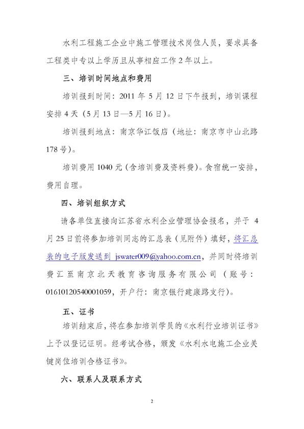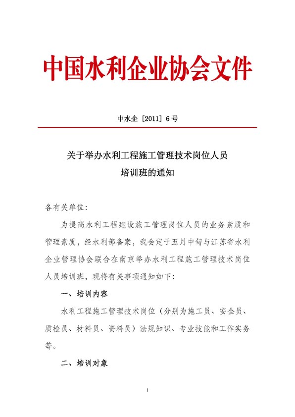 關于舉辦水利工程施工管理技術崗位人員培訓班的通知