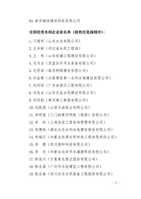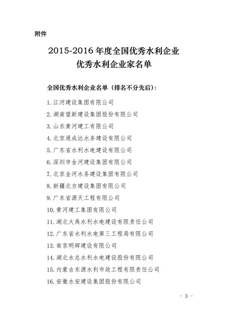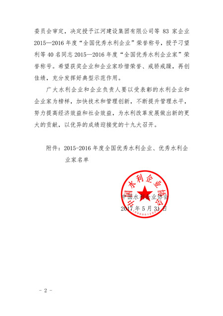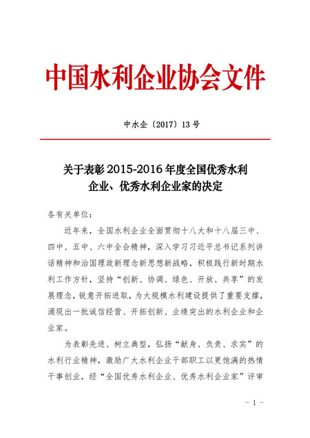 關于表彰2015-2016年全國優秀水利企業、優秀水利企業家的決定