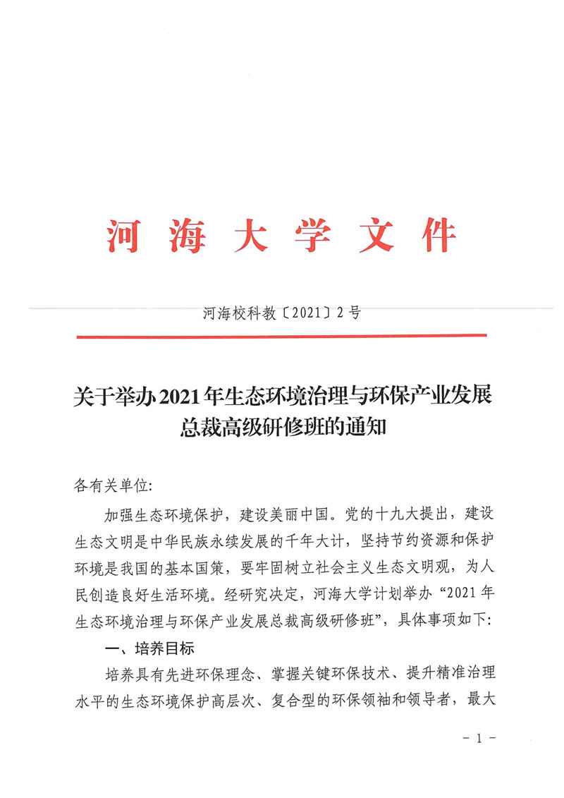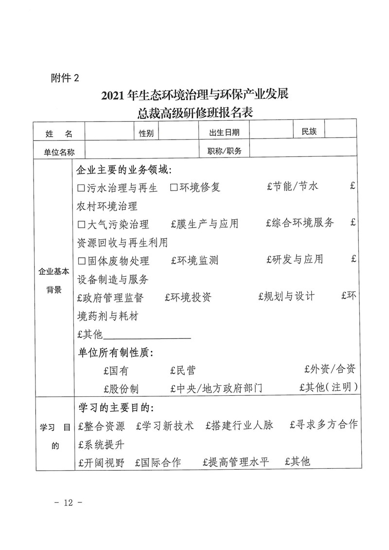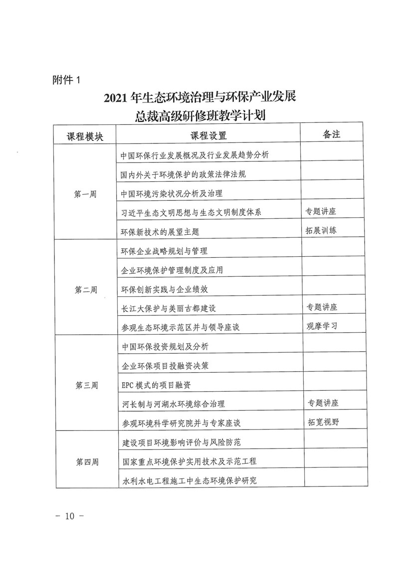 (轉發)關于舉辦2021年生態環境治理與環保產業發展總裁高級研修班的通知