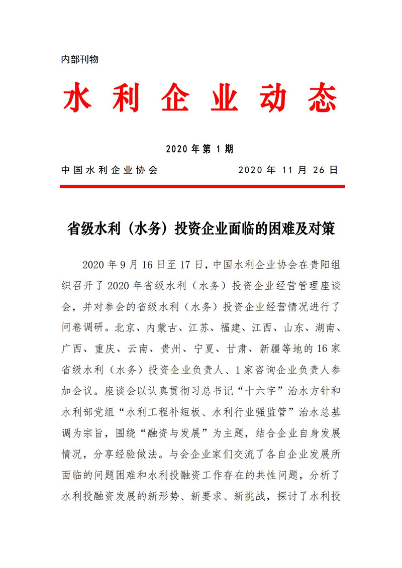 水利企業動態第1期—省級水利(水務)投資企業面臨的困難及對策