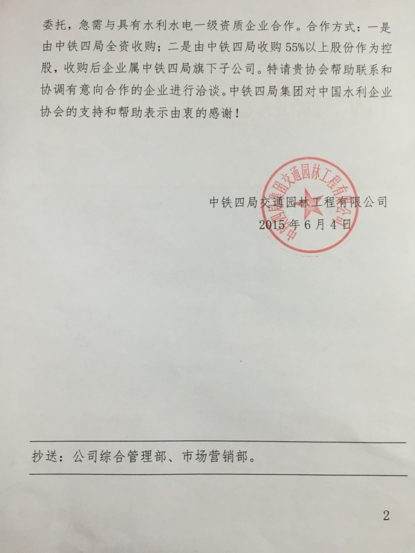 中鐵四局集團尋求水電一級資質單位合作
