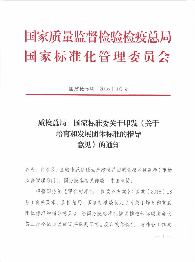 質檢總局國家標準委關于印發《關于培育和發展團體標準的指導意見》的通知