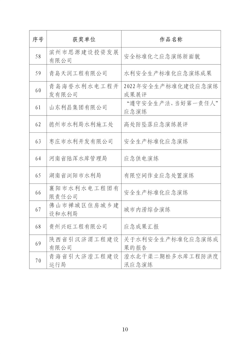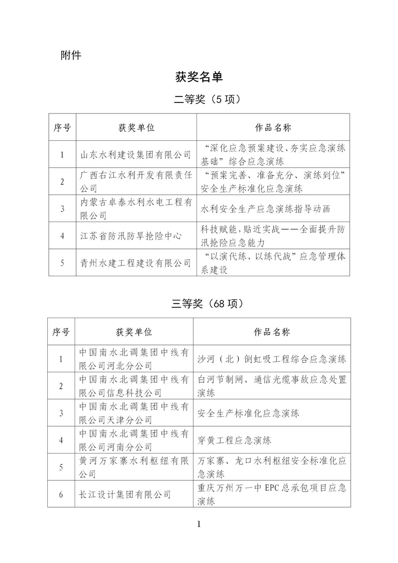 <轉(zhuǎn)發(fā)>水利部辦公廳關(guān)于公布水利安全生產(chǎn)標(biāo)準(zhǔn)化應(yīng)急演練成果評(píng)選展示活動(dòng)獲獎(jiǎng)名單的通知