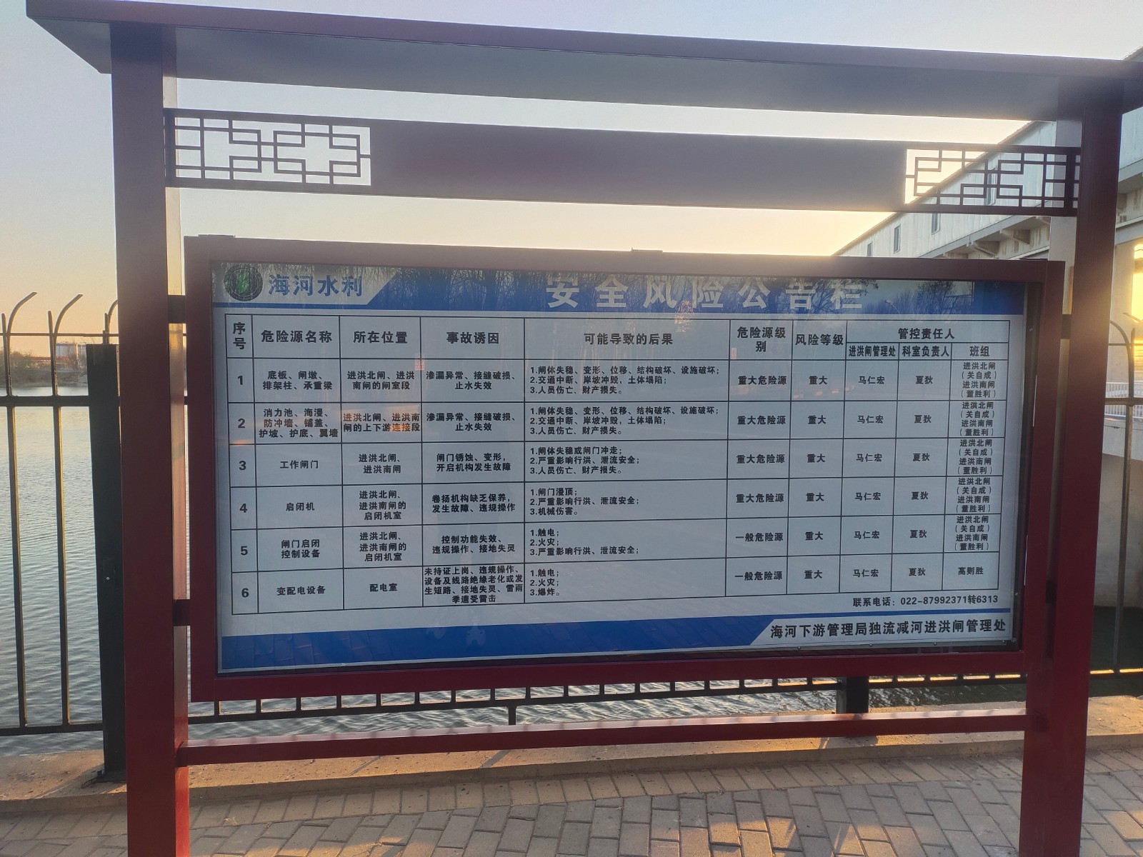 堅持“安全第一、預防為主、綜合治理”方針,推動水利安全風險預控、關口前移,依據《水利部關于印發構建水利安全生產風險管控“六項機制”的實施意見的通知》,通過現場勘察海委試點工程現場,進行危險源辨識和現場確認,對易發生事故的水閘、堤防類作業場所、崗位和設備設施等,進行安全風險管控的設計制作和現場布置,落實安全生產法律法規及標準規范關于安全風險分級管控的有關要求,加快委屬基層單位安全可視化和現場標準化,全面提升基層安全生產管理能力和水平,提升委屬單位或工程安全風險防控能力,科學防范和有效遏制水利生產安全事故。