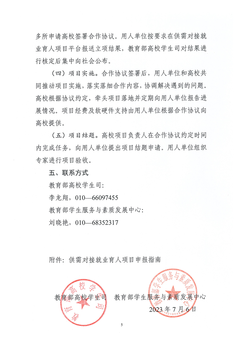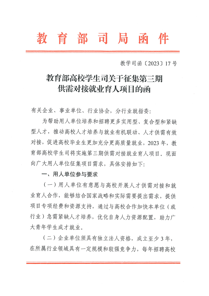 <轉發>《教育部高校學生司關于征集第三期供需對接就業育人項目的函》