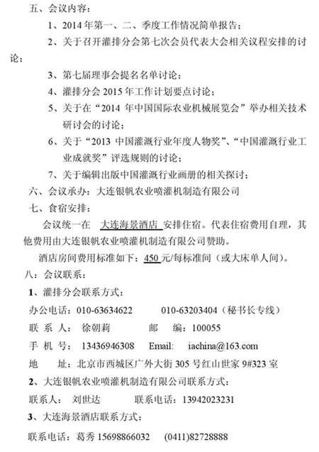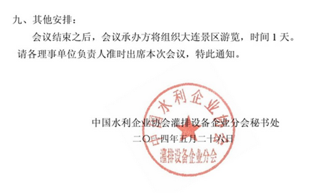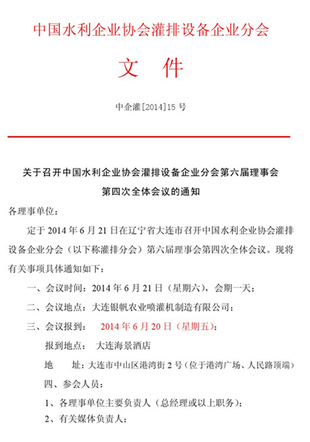 關于召開中國水利企業協會灌排設備企業分會第六屆理事會第四次全體會議的通知