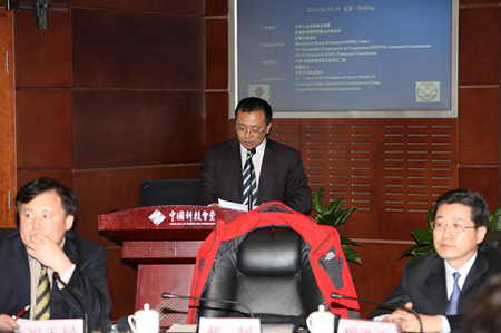 ????開幕式由中歐水資源交流平臺(tái)秘書處中方秘書長(zhǎng)、水利部國(guó)際合作與科技司郝釗處長(zhǎng)主持。顧洪波會(huì)長(zhǎng)、歐盟駐華代表處貿(mào)易官員Laurent Javaudin致辭。