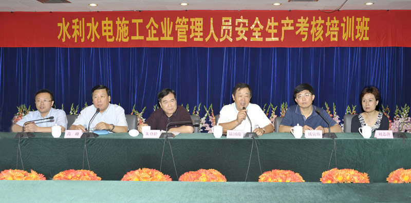 中國水利企業協會朱登銓會長、水利部安全監督司錢宜偉處長出席開班儀式并做了重要講話。朱登銓會長強調:安全生產培訓與考核,提升了廣大施工企業和管理人員對安全生產的認識,提高了企業管理水平和相關從業人員的業務素質,降低了生產事故的發生率,改善了工程安全管理和質量管理,加強了職工隊伍建設、和諧企業建設,提高了企業的市場競爭力。錢宜偉處長介紹了水利行業安全生產形勢和監督管理工作重點。開班儀式由中國水利電力對外公司高峰副書記主持,陸國俊總經理指示大家要認真學習,學以致用,確實提高工程建設質量和安全管理水平。