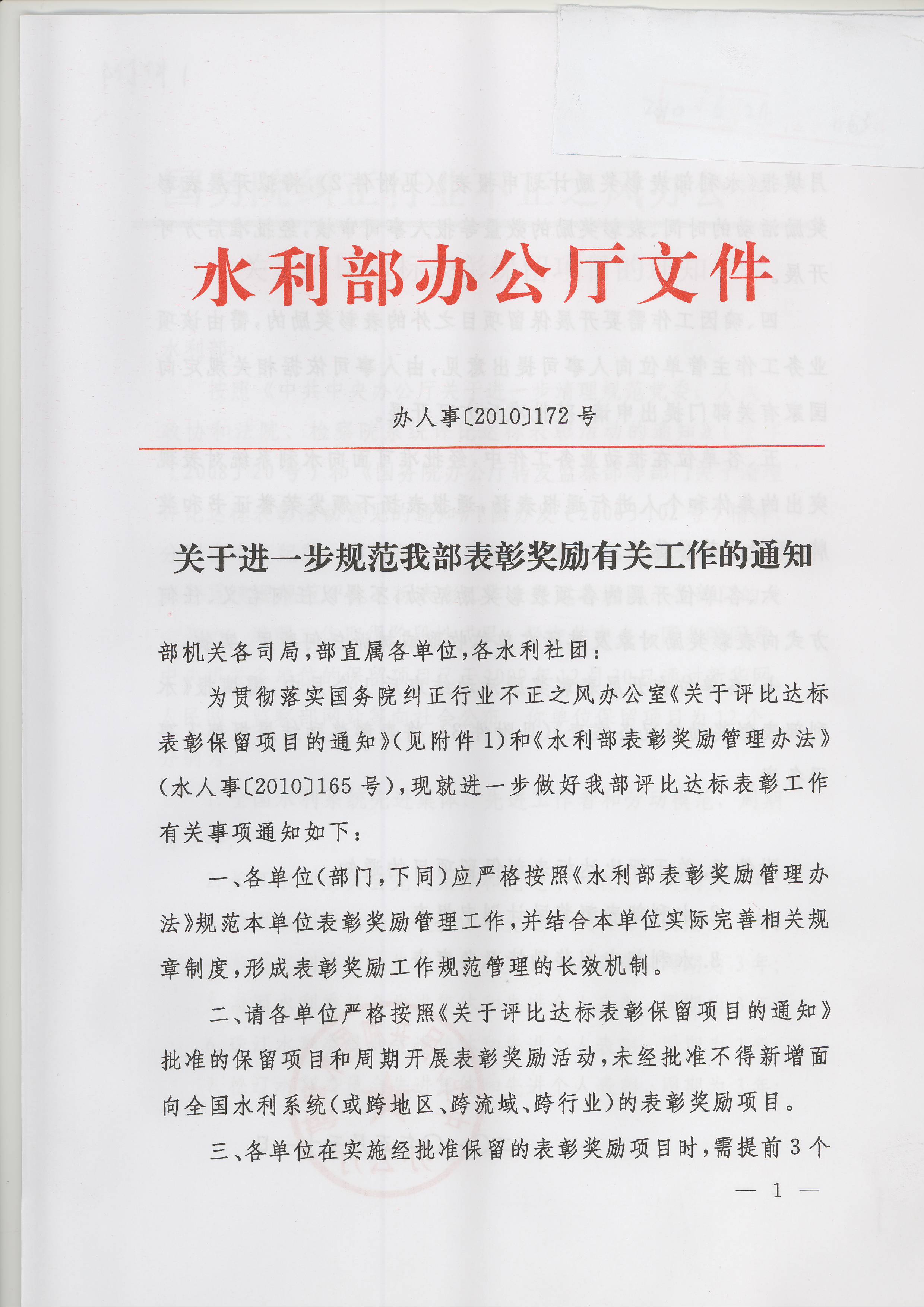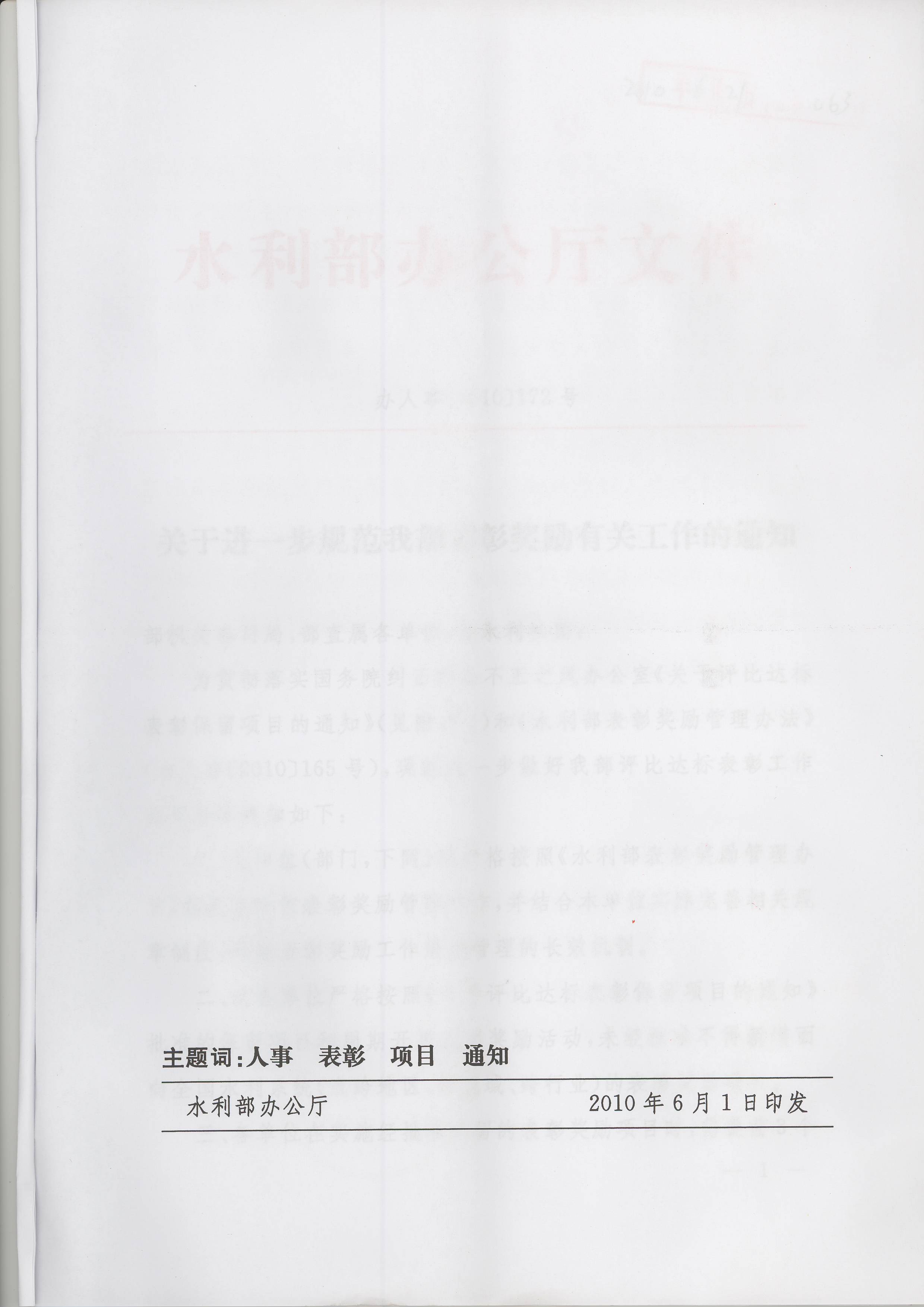 水利部《關(guān)于進(jìn)一步規(guī)范我部表彰獎(jiǎng)勵(lì)有關(guān)工作的通知》