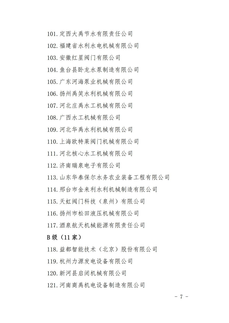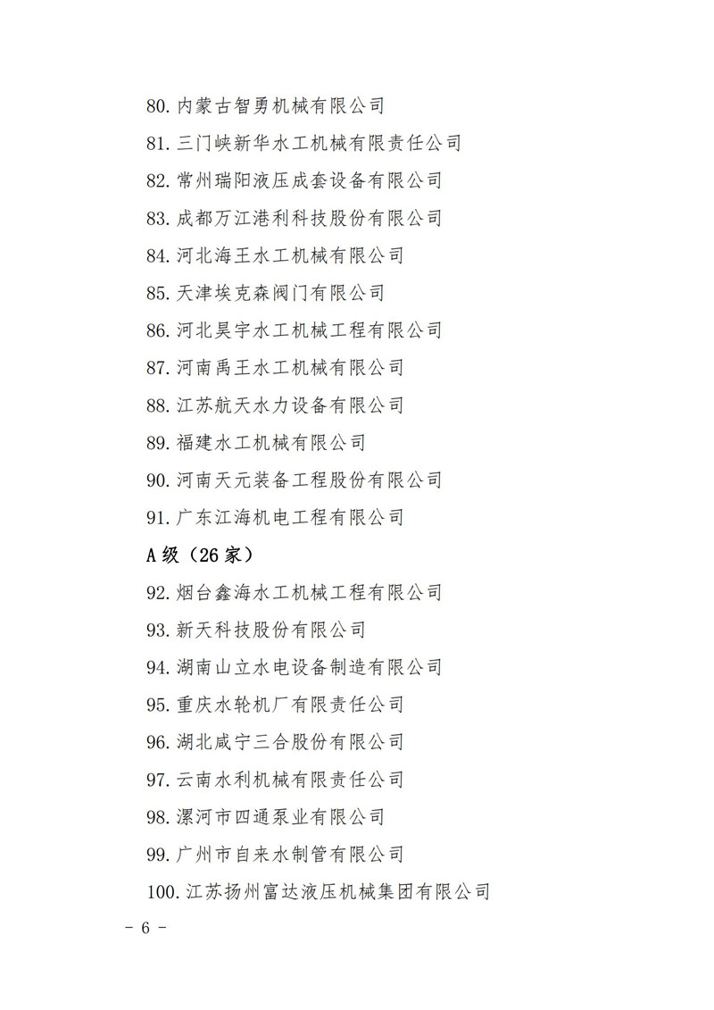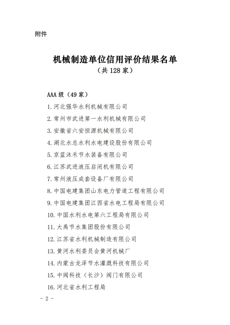 關于2020年度水利建設市場主體(機械制造單位)信用評價結果的公告