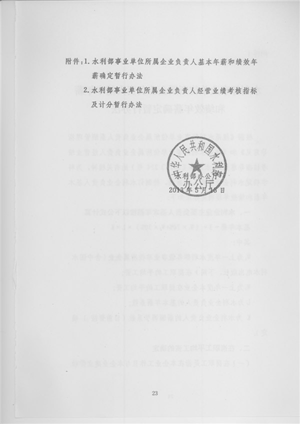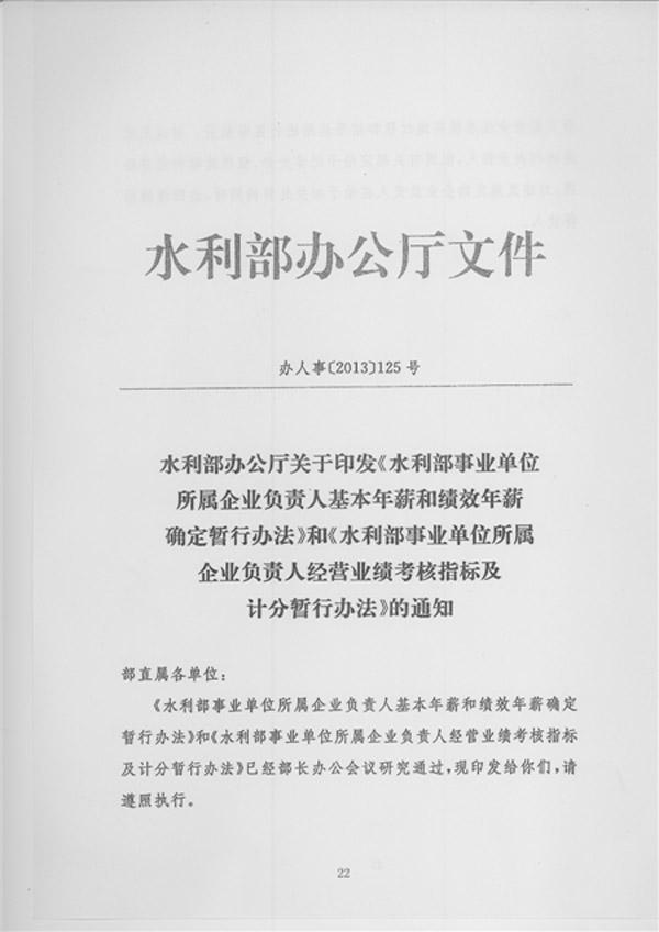 水利部辦公廳關于印發《水利部事業單位所屬企業負責人年薪和績效年薪確定暫行辦法》和《水利部事業單位所屬企業負責人經營業績考核指標及積分暫行辦法》的通知